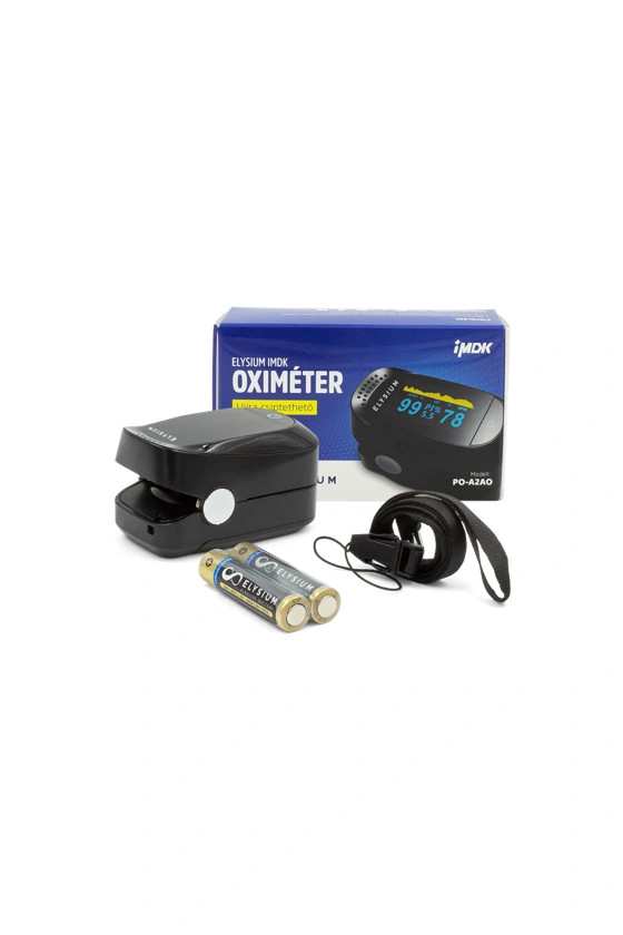Könnyű, kompakt és egyszerűen használható P0-A2A0 ujjra csíptethető pulzoximéter. A doboz 2 db AAA Elysium tartós elemet tartalmaz.