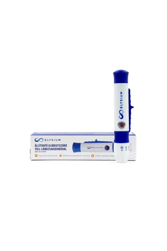 Az Elysium állítható ujjbegyszúró tollal könnyű és biztonságos az otthoni vércukorszint méréshez elengedhetetlen vérvétel. A szúrás mélysége 1-től 10-ig állítható, így az adott bőrtípusnak megfelelően személyre szabható.