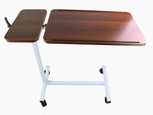Gurítható asztal betegágy mellé, állítható magasságú. A termék porfestett acélvázzal és dönthető HDF asztallappal kerül forgalomba.