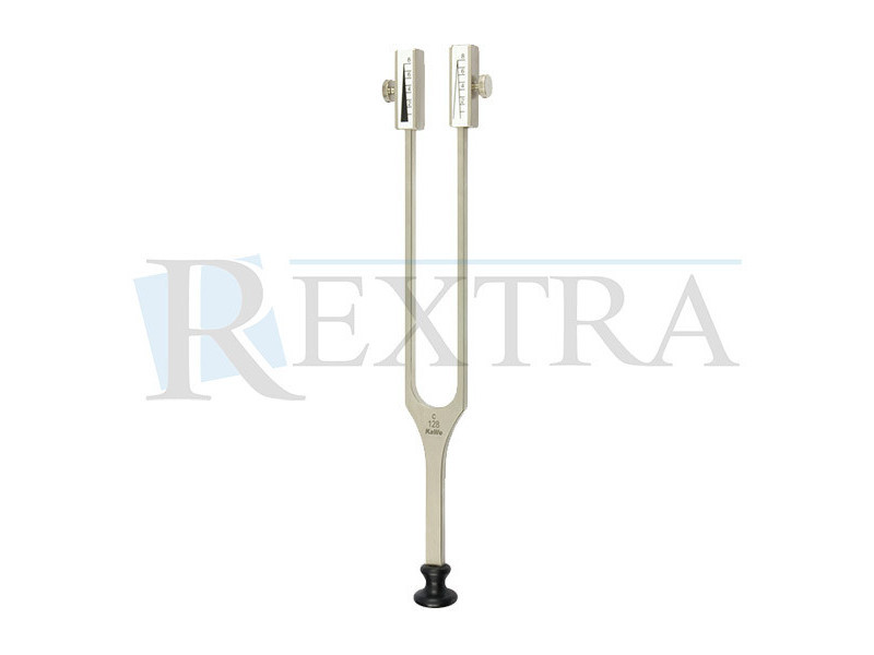 Ezek a hangvilla 2 darab skálázott csillapítóval vannak felszerelve. A csillapítók egyikén egy kontúr nyíl van, a másikon pedig egy satírozott. Mindkét nyíl oldalán 8 osztásos skála található. Használat közben ügyeljen arra, hogy a csillapító alsó része a villaágakon található jelzéshez legyen igazítva. A villát egyik kézbe vesszük a száránál fogva és megrezegtetjük az állítócsavar másik kéz tenyeréhez való ütéssel. A hangvilla rezgésbe hozható úgy is, hogy az ágait az ujjunkkal megpöcköljük. Amikor vibrál, mindkét nyíl háromszögként jelenik meg amelynek oldalai egy olyan ponton metszik egymást, amely felfelé halad , amint a rezgés amplitúdója csökken.Ezután helyezzük a műanyag lábat, vagy a hangvilla alját a vizsgálandó testrészre.Ezek elsősorban foltok a végtagokon , ahol az ízületek nem tartoznak izom-vagy zsírszövet. Annak érdekében, hogy biztosítsa a hosszú távú megfigyelést, az idő múlásával minden vizsgált terület minden egyes értékét össze kell hasonlítani az előző mérési eredménnyel. A beteg együttműködése elengedhetelen, hogy jelezze azt a pontot amikor az elhalványuló rezgést már végleg nem érzi .