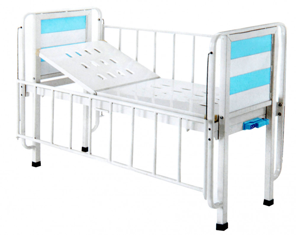 Gyermekek otthoni és kórházi ápolására egyaránt alkalmas állítható magasságú mechanikus betegágy, állítható háttámasszal, oldalrácsokkal.
