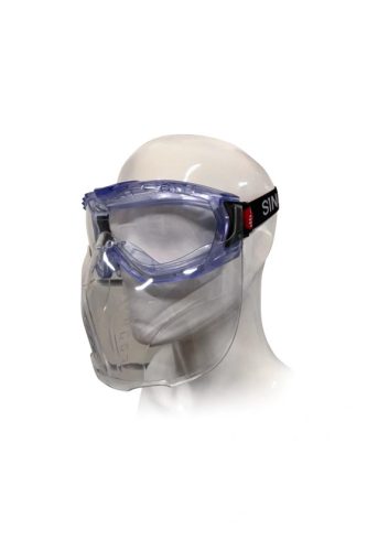 Singer EVAGUARD szellőzés nélküli, gumipántos (gázvédő) szemüveg Singer ACCGUARD arcvédővel, mely korrekciós szemüveg felett is viselhető.